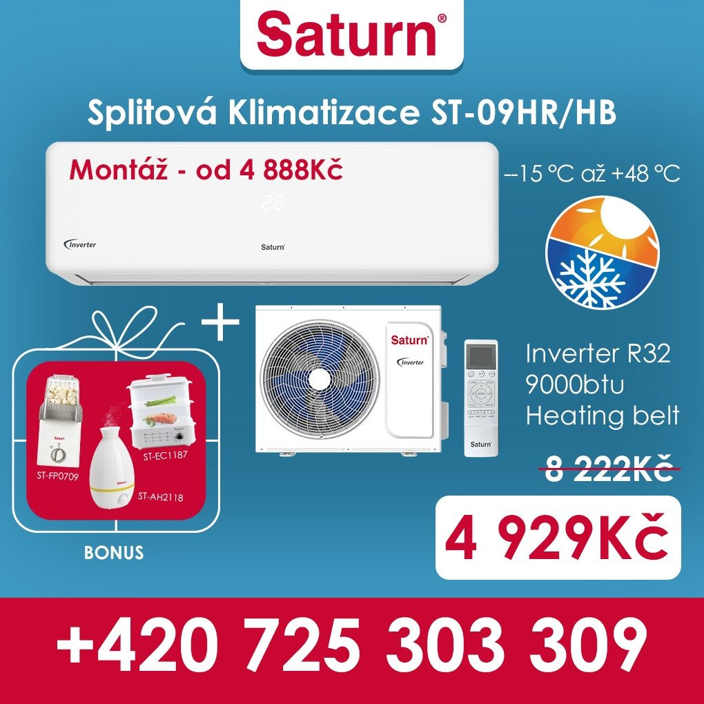 Splitová nástěnná klimatizace Saturn ST-09HR/HB vám přináší vysoký výkon za skvělou cenu. Klimatizace Saturn ST-09HR/HB je určena pro velikost místnosti do cca 15 m2. Saturn ST-09HR/HB je vhodná pro použití ve větších rodinných domech a bytech např. v obývacím pokoji, ložnici, dětském pokoji, v menších kancelářích, ve skladech a všude tam, kde je potřeba ochladit nebo vytopit danou místnost.